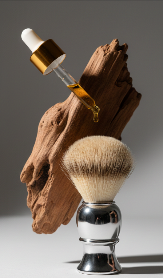Naturally anti-inflammatory wood oils that soothe the skin while providing a grounding, masculine scent.